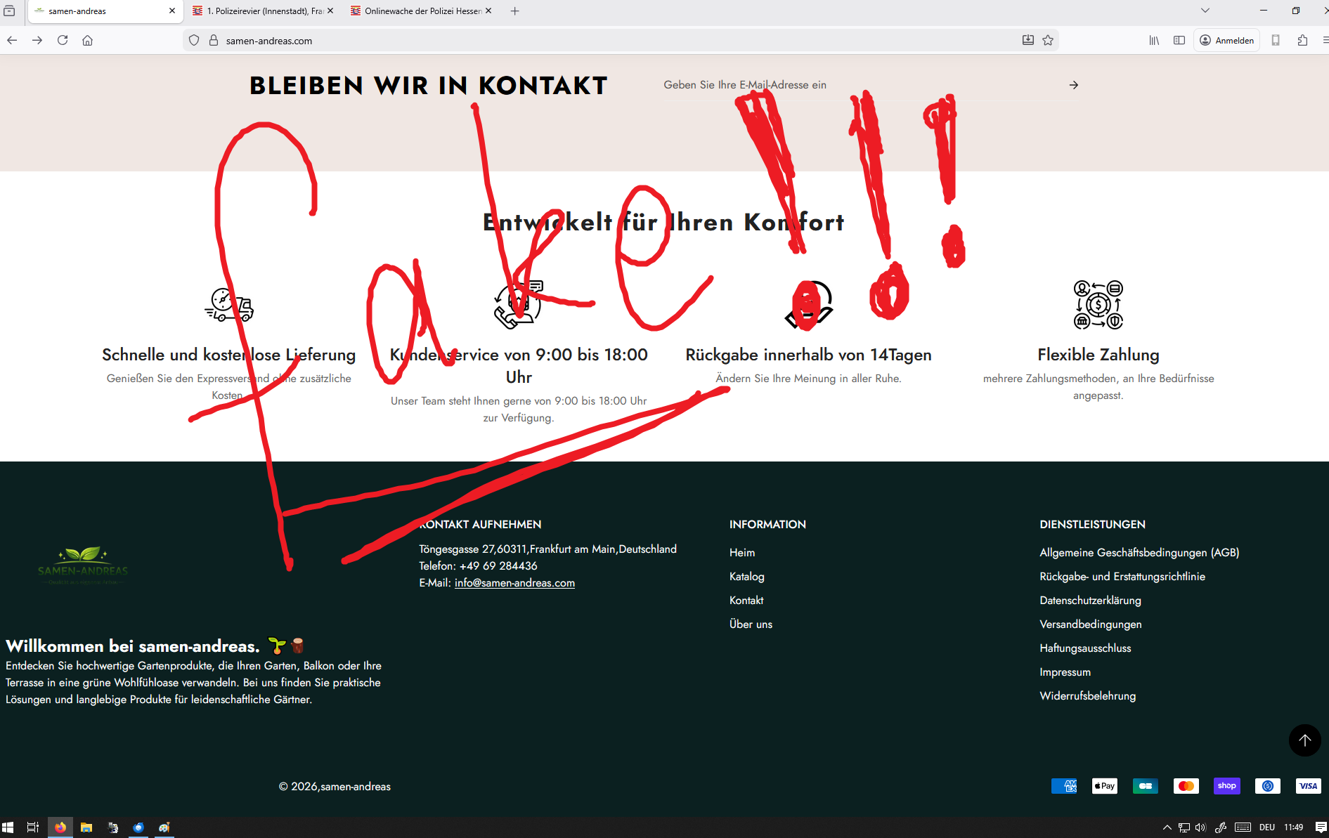 in unserem Namen wird ein FAKESHOP betrieben